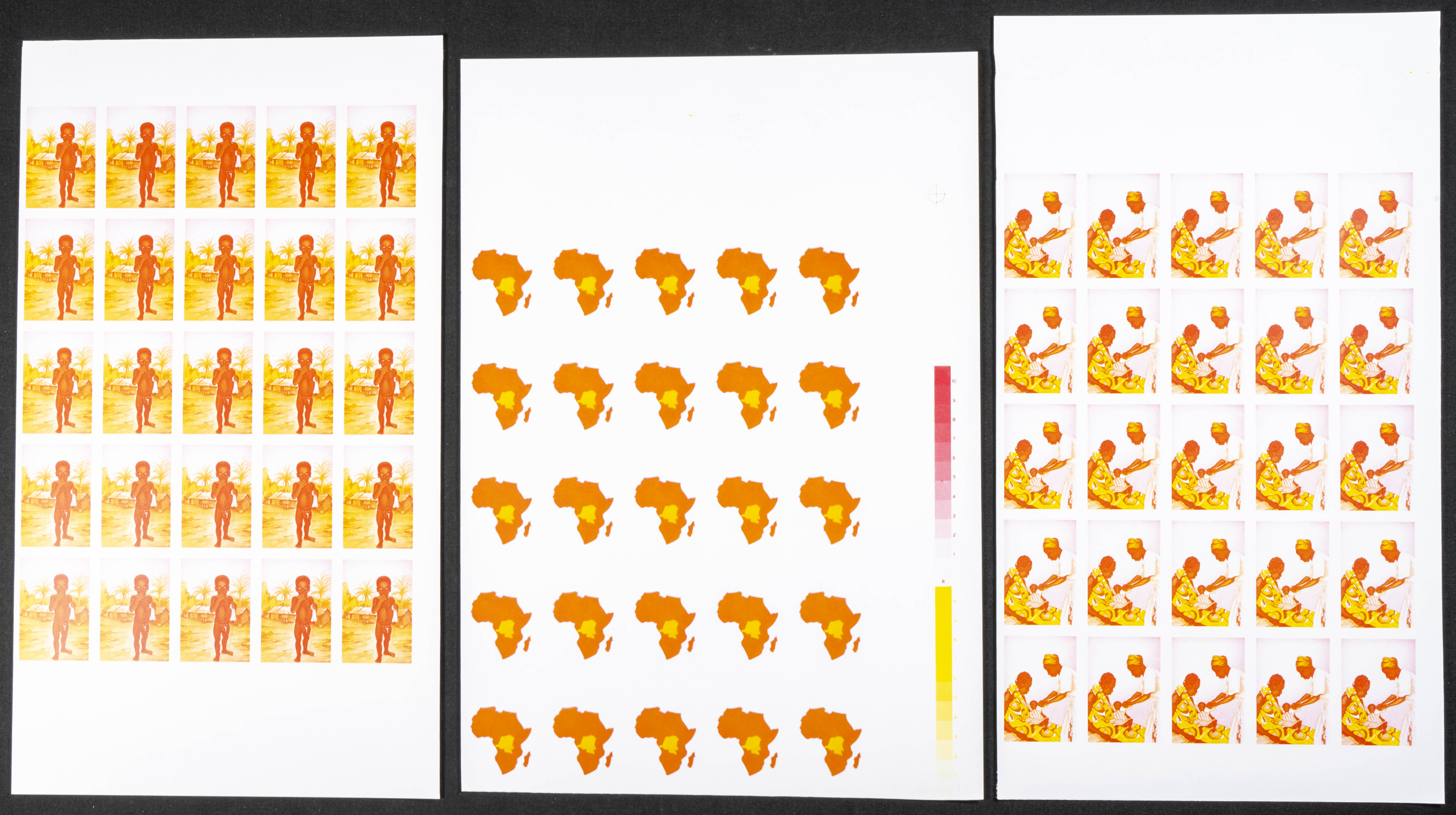 ★★Yvert 800/02. 1971. UNICEF. Group of progressive plate proofs of the set. TO EXAM.