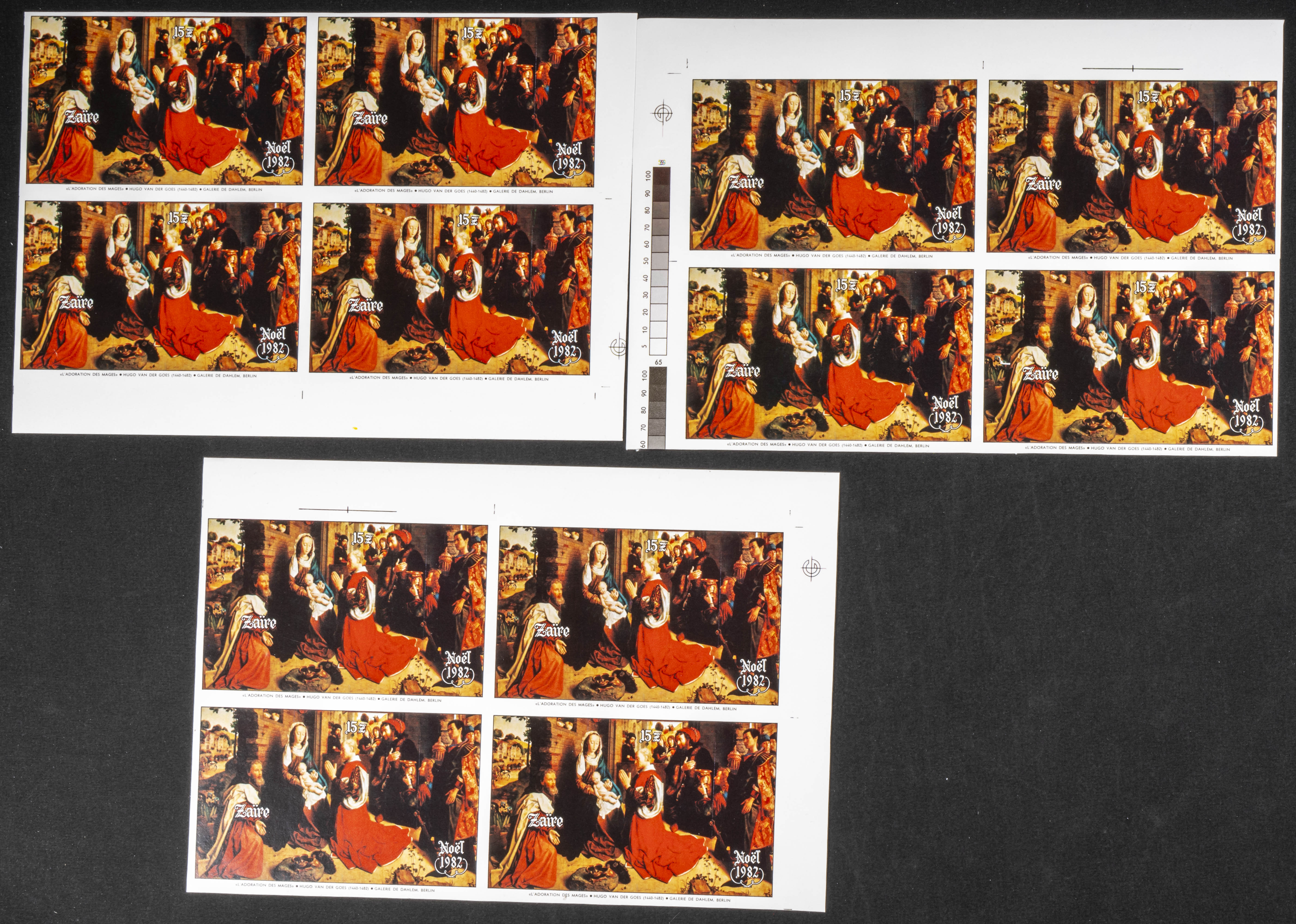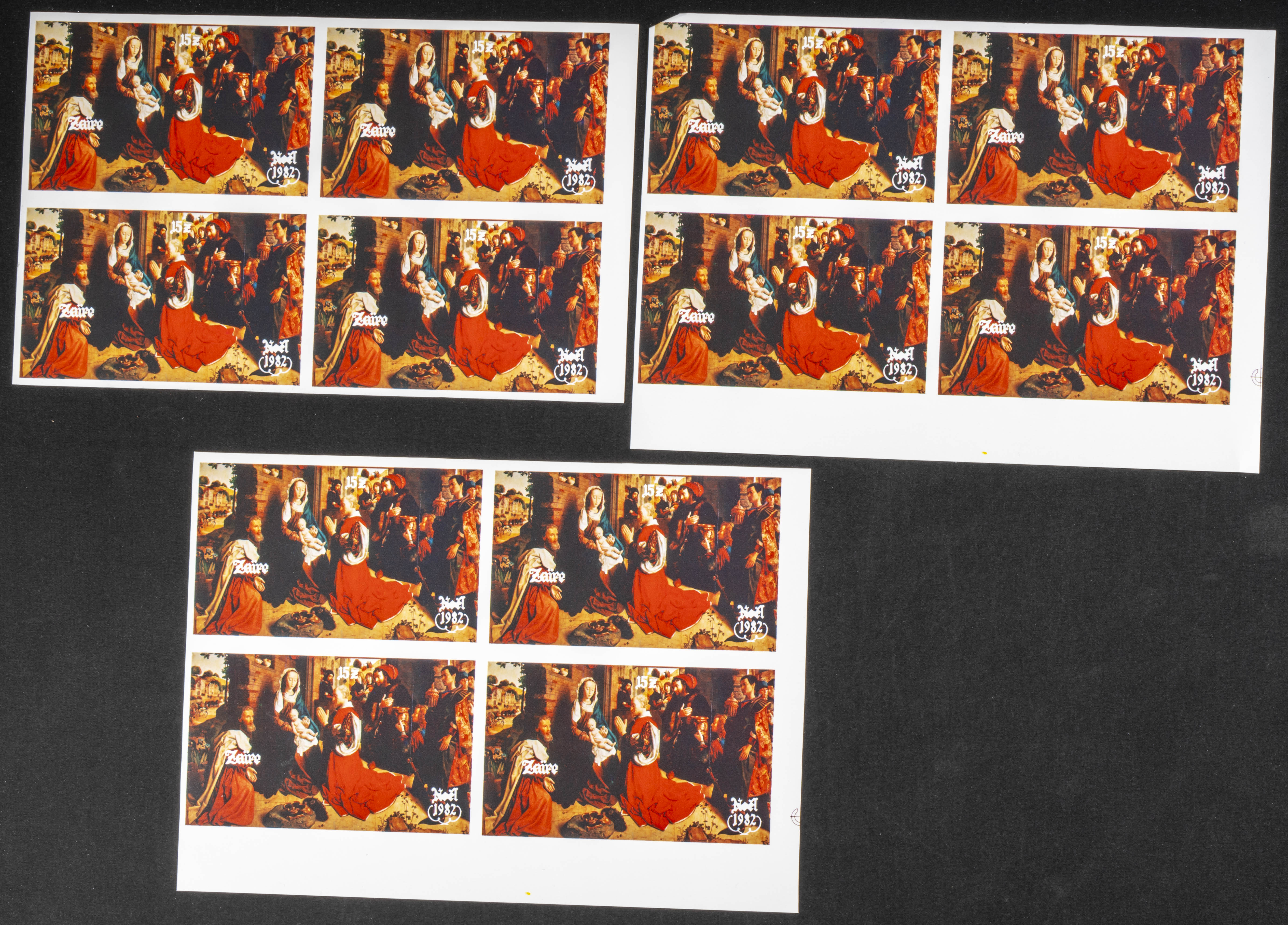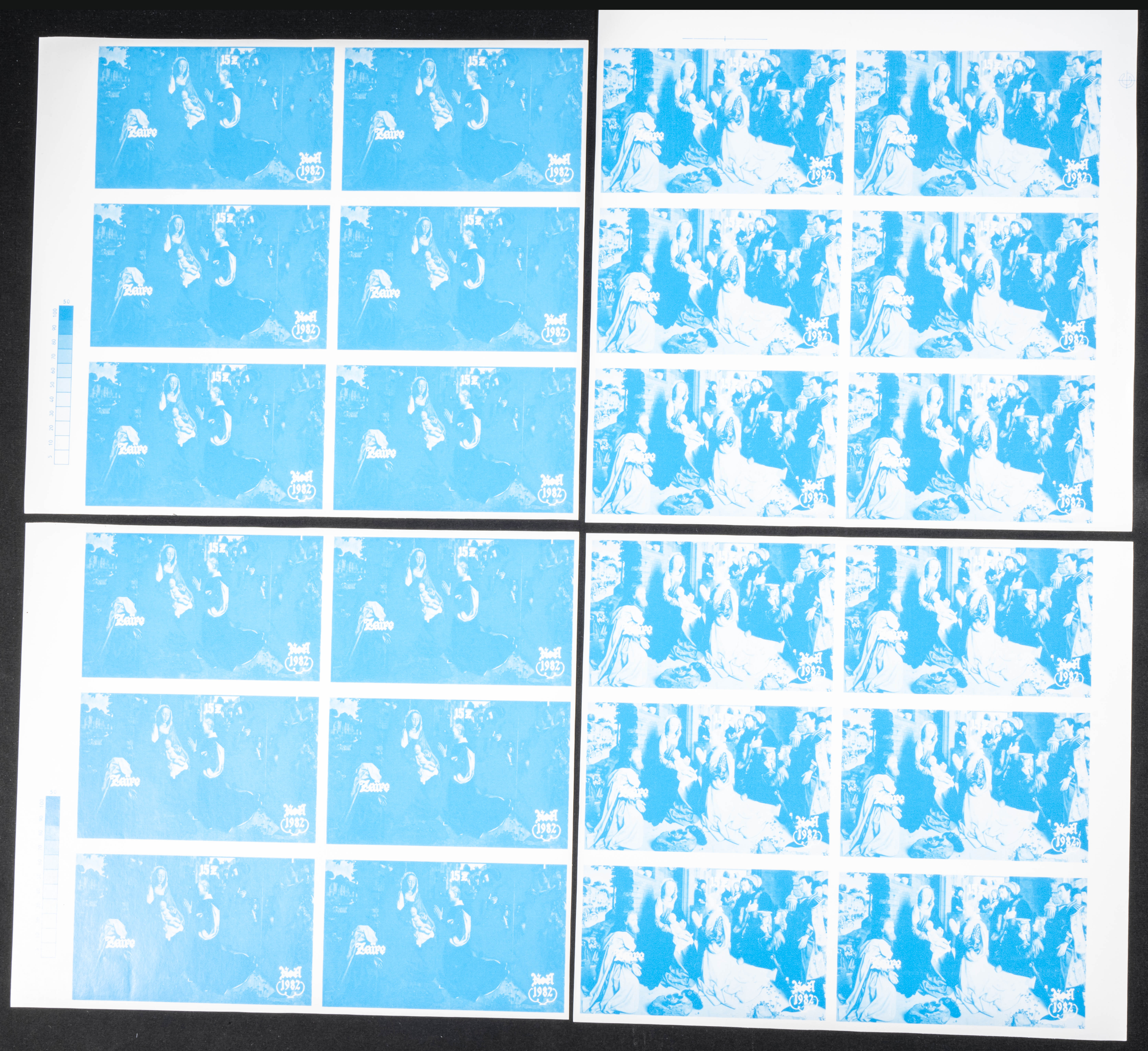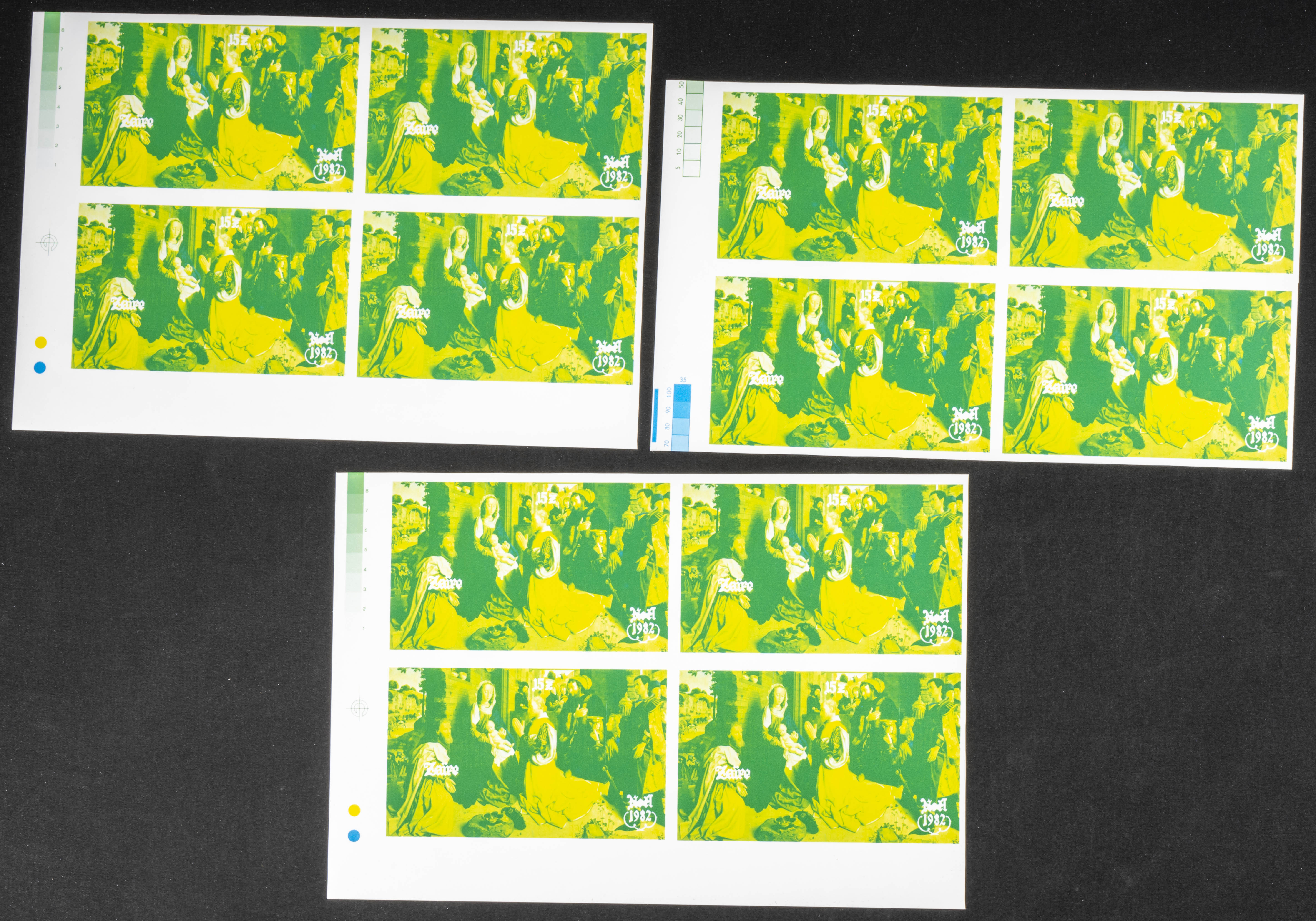 ★★Yvert B30. 1982. Christmas. Group of progressive plate proofs of the set. TO EXAM.