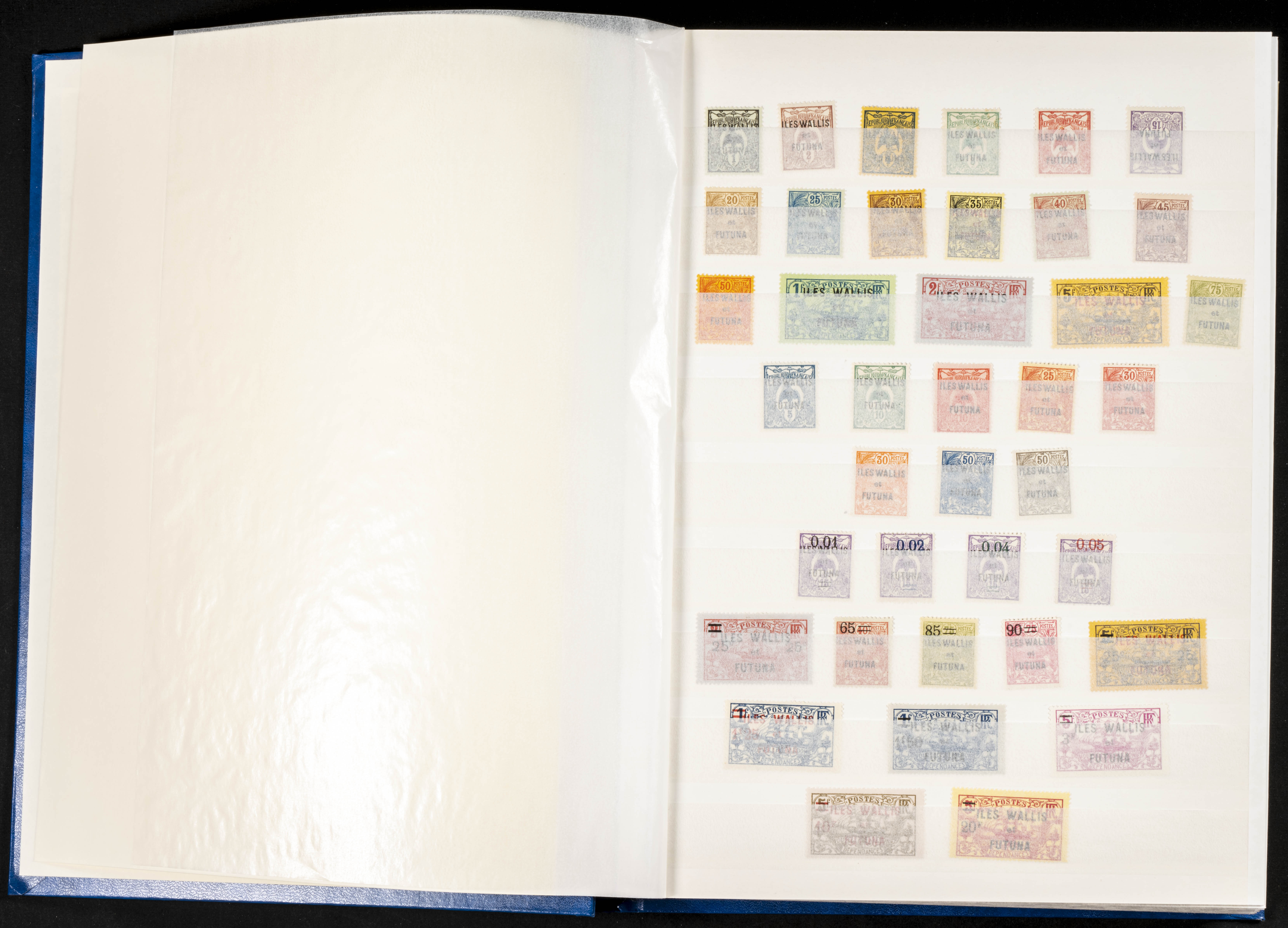★★/★(1920ca). Interesante colección prácticamente completa, especialmente al principio, de Wallis y Futuna entre 1909 y 2006, en nuevo y destacando la serie sobrecargada France Libre de 1941 (sin fijasellos), además del correo aéreo y hojas bloque. IMPRESCINDIBLE EXAMINAR. Yvert 2024: ++4.900 Euros
