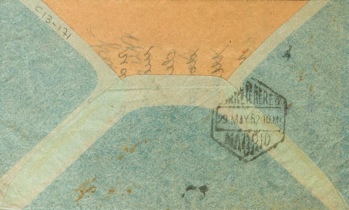 1942. FRENTE DE NOWGOROD-INTENDENCIA (29 de Mayo). 1 pts azul. BILBAO a FELDPOST Nº41953 (Compañía de Panificación). Marca "AB", en azul. MAGNIFICA Y RARA.