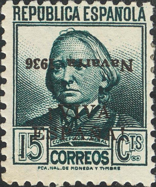 ★ 4hEb. 1936. 15 cts gris verdoso. Sobrecarga "NAVARRA 1936" INVERTIDA. MAGNIFICO.
