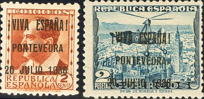 ★ NE1, NE17. 1936. 2 cts castaño rojizo y 2 pts azul. NO EMITIDOS. MAGNIFICOS. Edifil 2017: 139 Euros