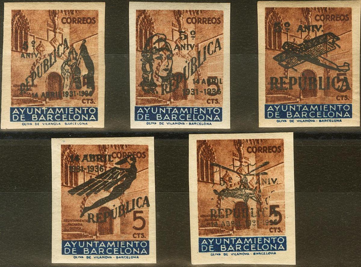 ★★/★ NE17/21. 1936. Serie completa (el Edifil Nº: NE17 con fijasellos). NO EMITIDA. MAGNIFICA. Edifil 2022: 144 Euros