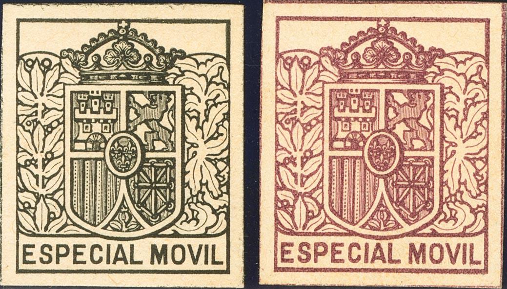 (★)1932. Sin valor, negro y sin valor, lila, ambos ESPECIAL MOVIL. ENSAYOS DE PLANCHA. MAGNIFICOS Y RAROS, NO RESEÑADOS EN GALVEZ CON ESTOS COLORES.