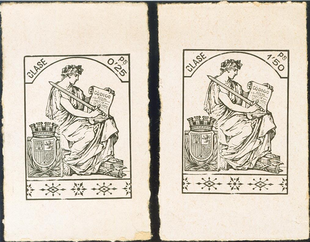 (★)1931. 0´25 pts negro y 1´50 pts negro POLIZAS. PRUEBAS DE PUNZON. MAGNIFICAS Y MUY RARAS. (Alemany P-4/5, Gálvez F99/00)
