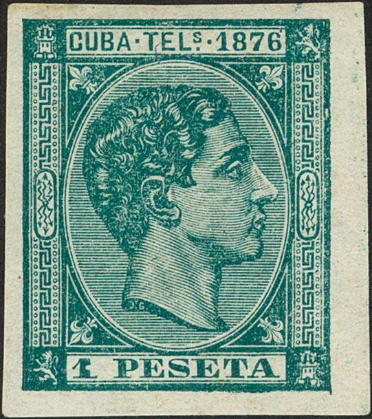 ★ 35s. 1876. 1 pts verde (enormes márgenes). SIN DENTAR. MAGNIFICO. Edifil 2022: 19,5 Euros