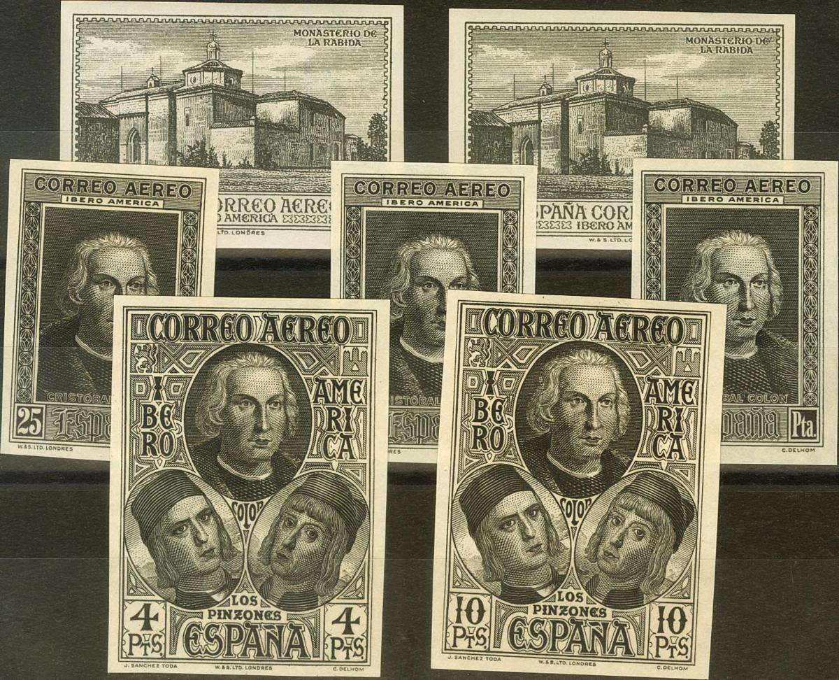 (★) 559/65P. 1930. Serie completa, siete valores. ENSAYOS DE PLANCHA, en negro. MAGNIFICA Y RARA. (Gálvez CA357/63)