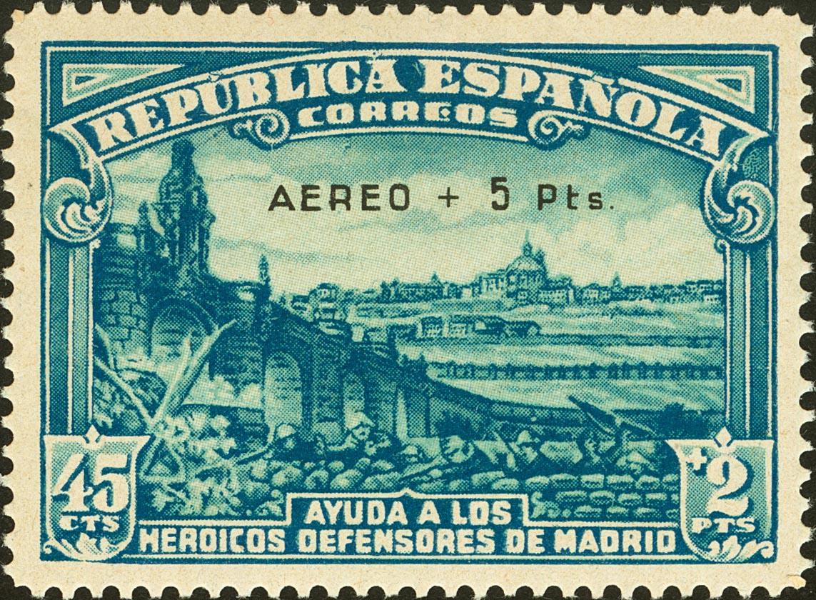 ★★ 759. 1938. AEREO+5 PTS (Posición 18). Excelente centraje. MAGNIFICO. Cert. CEM. Edifil 2022: 700 Euros