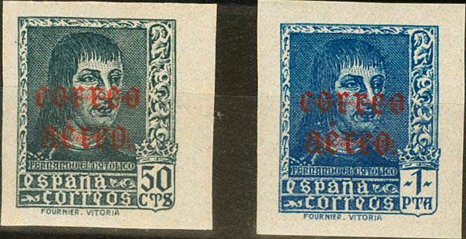 ★★ 845/46s. 1938. Serie completa. SIN DENTAR. MAGNIFICA. Edifil 2022: 310 Euros