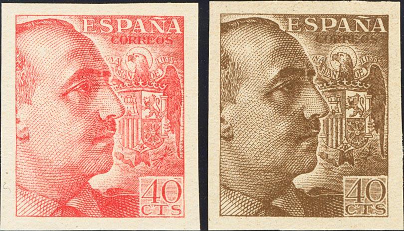 ★★ 925ccs, 925ccas. 1940. 40 cts rosa y 40 cts castaño. CAMBIOS DE COLOR y SIN DENTAR. MAGNIFICOS Y RAROS. Edifil 2020: +785 Euros