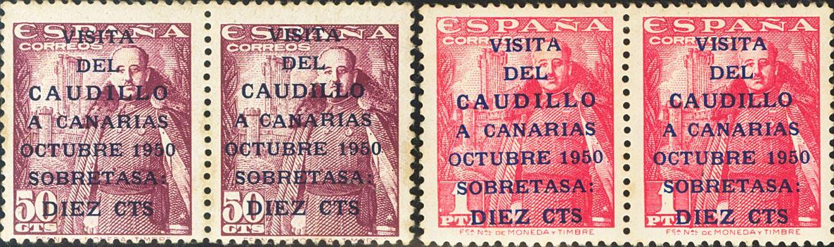 ★★ 1088/89(2), 1088/89he(2). 1951. Serie completa, en parejas (manchitas del tiempo). Un sello variedad CAUDILLO ESTRECHO. BONITAS. Edifil 2020: 460 Euros