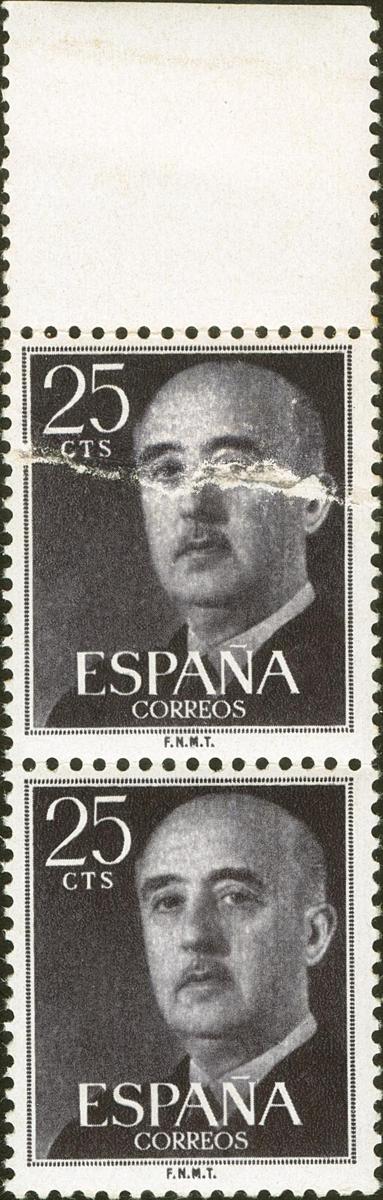 ★★ 1146x. 1955. 25 cts violeta negro, pareja. Variedad por EMPALME DEL PAPEL. MAGNIFICA.