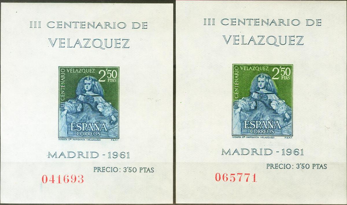 ★★ 1346(2). 1961. Conjunto de dos hojas bloques del valor 2´50 pts, con diferentes tonalidades del color verde. MAGNIFICAS.