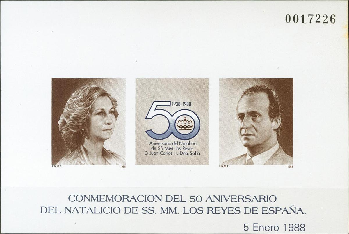★★ 15P. 1988. Prueba de Lujo. 50º ANIVERSARIO DEL NATALICIO DE S.S.M.M. MAGNIFICA. Edifil 2022: 120 Euros