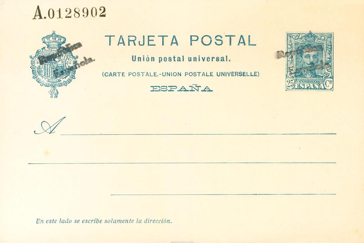 (★) EP68. 1931. 25 cts azul (sobrecarga manual de dos líneas) sobre Tarjeta Entero Postal. MAGNIFICA Y MUY RARA. Edifil 2022: 385 Euros