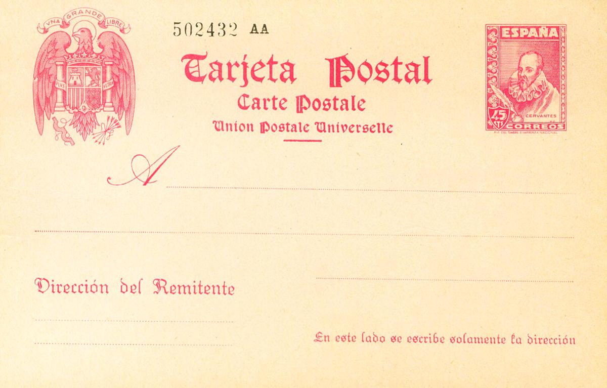 (★) EP84. 1938. 45 cts rosa carmín, sobre Tarjeta Entero Postal. MAGNIFICA. Edifil 2022: 139 Euros