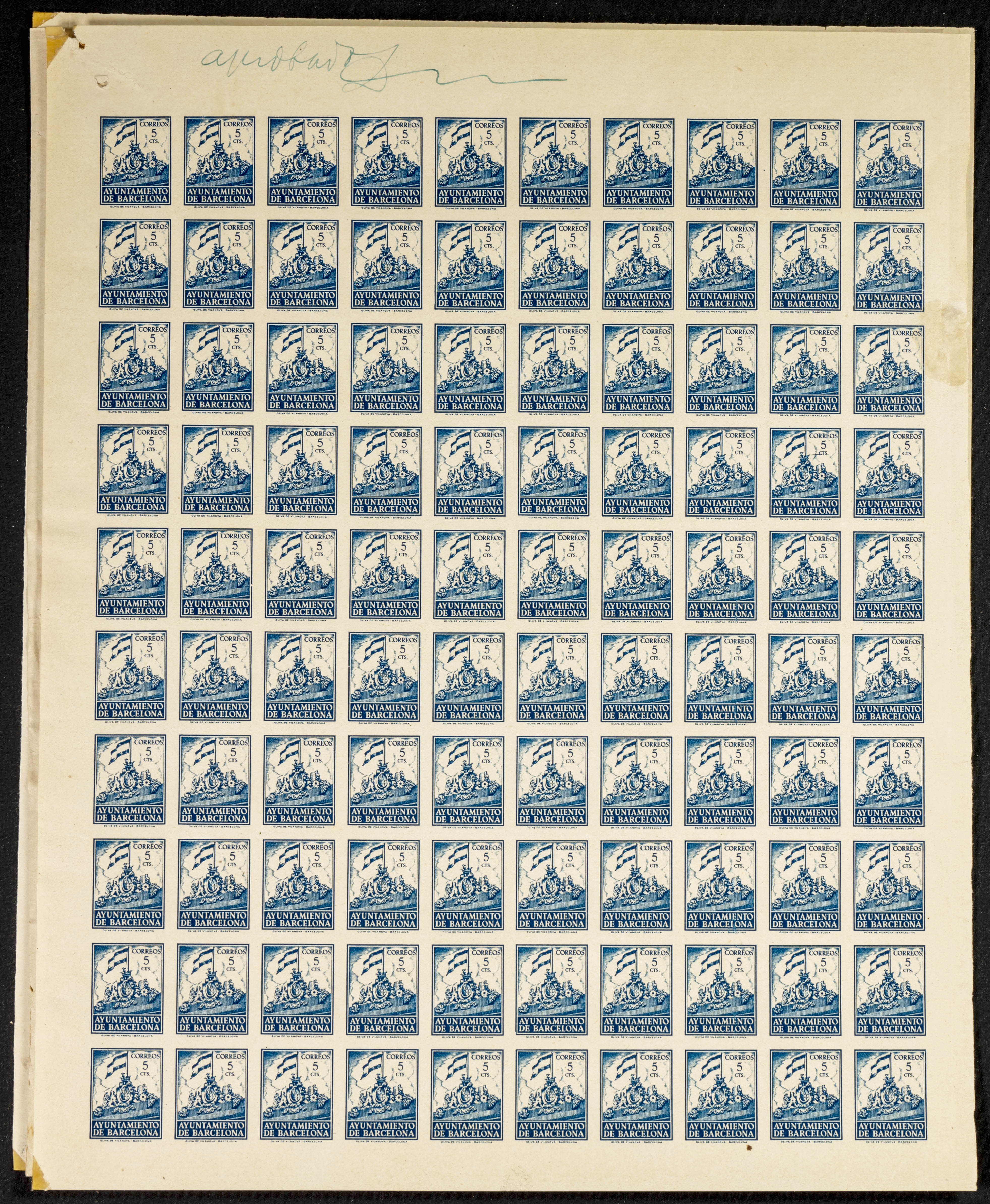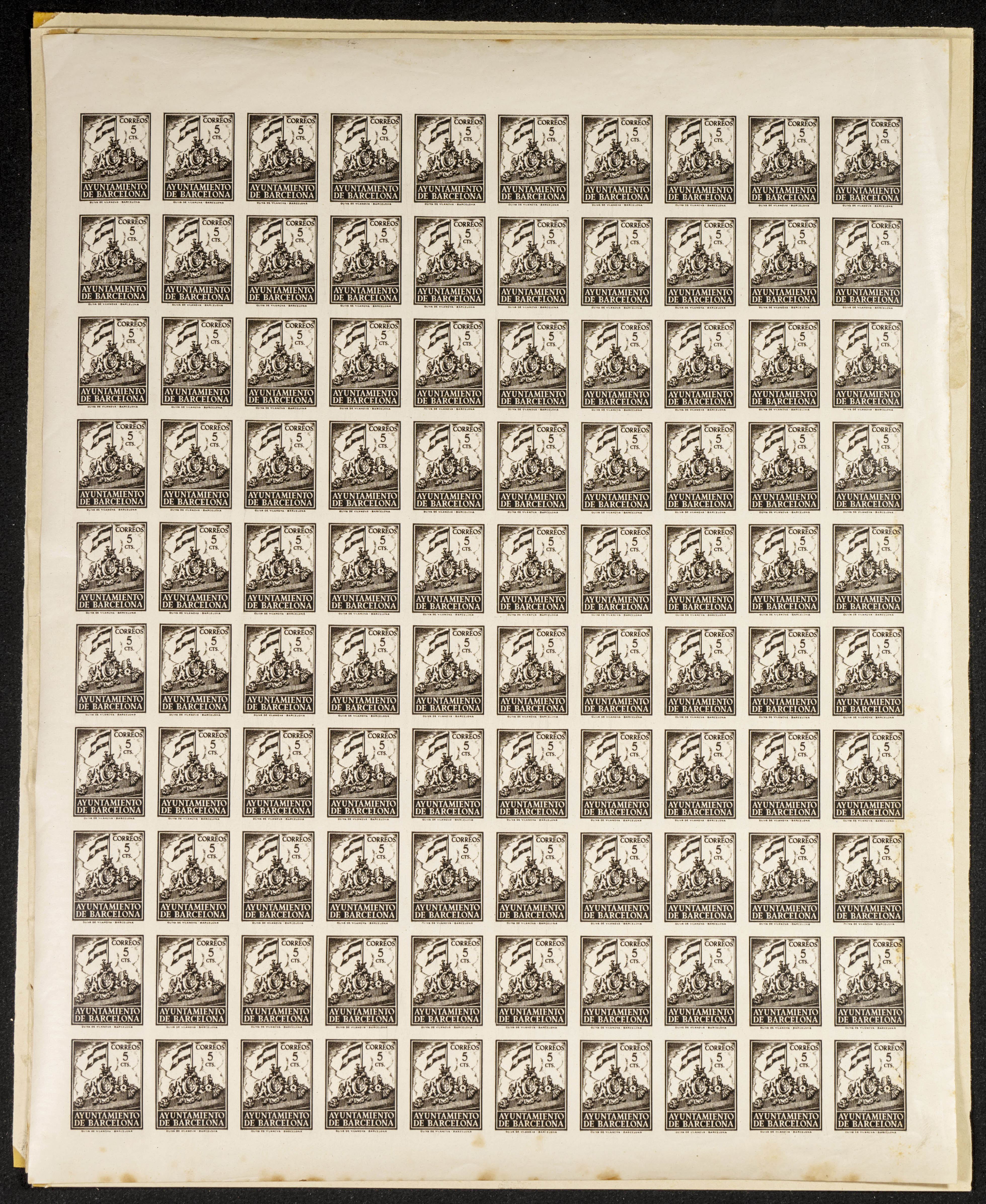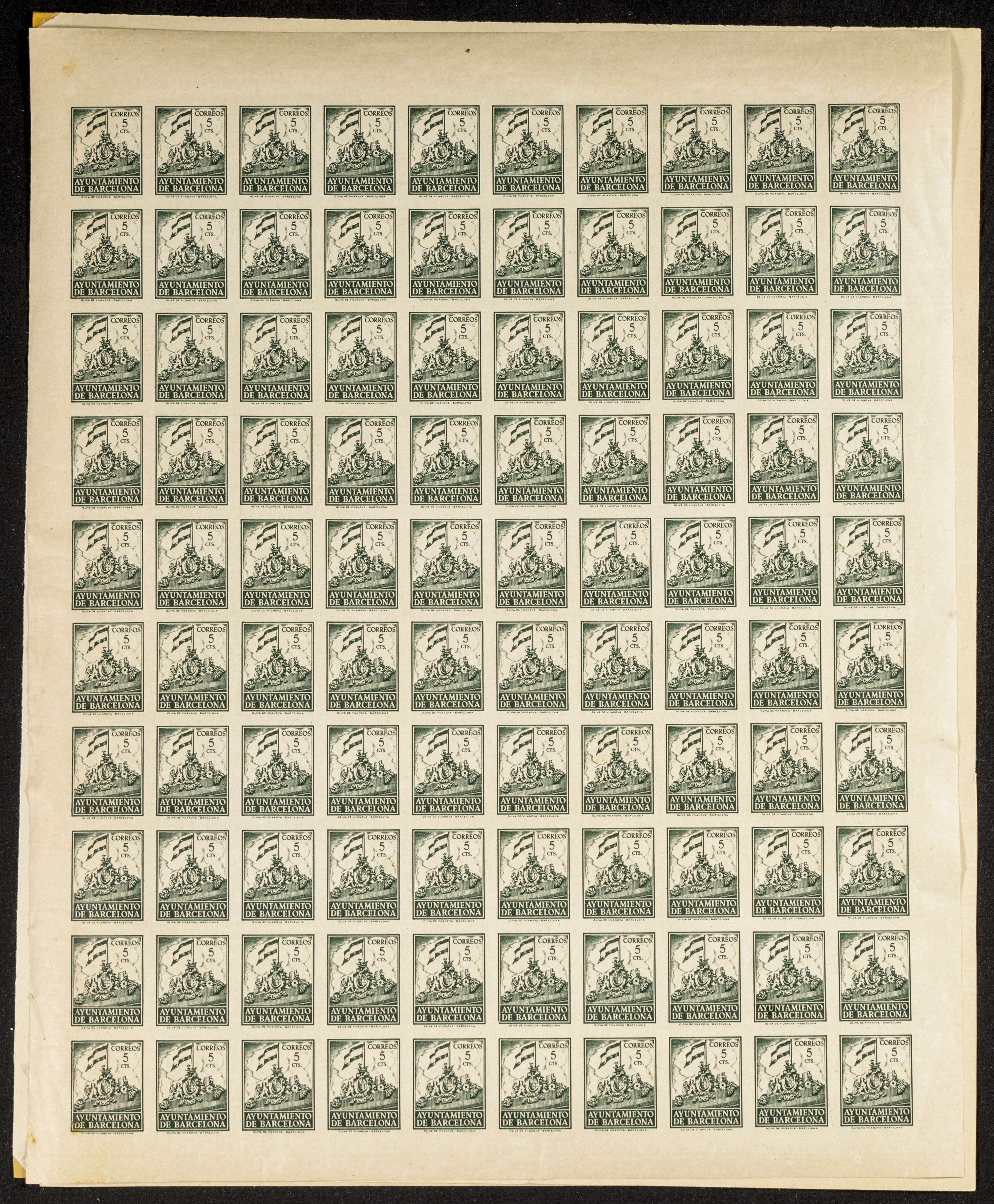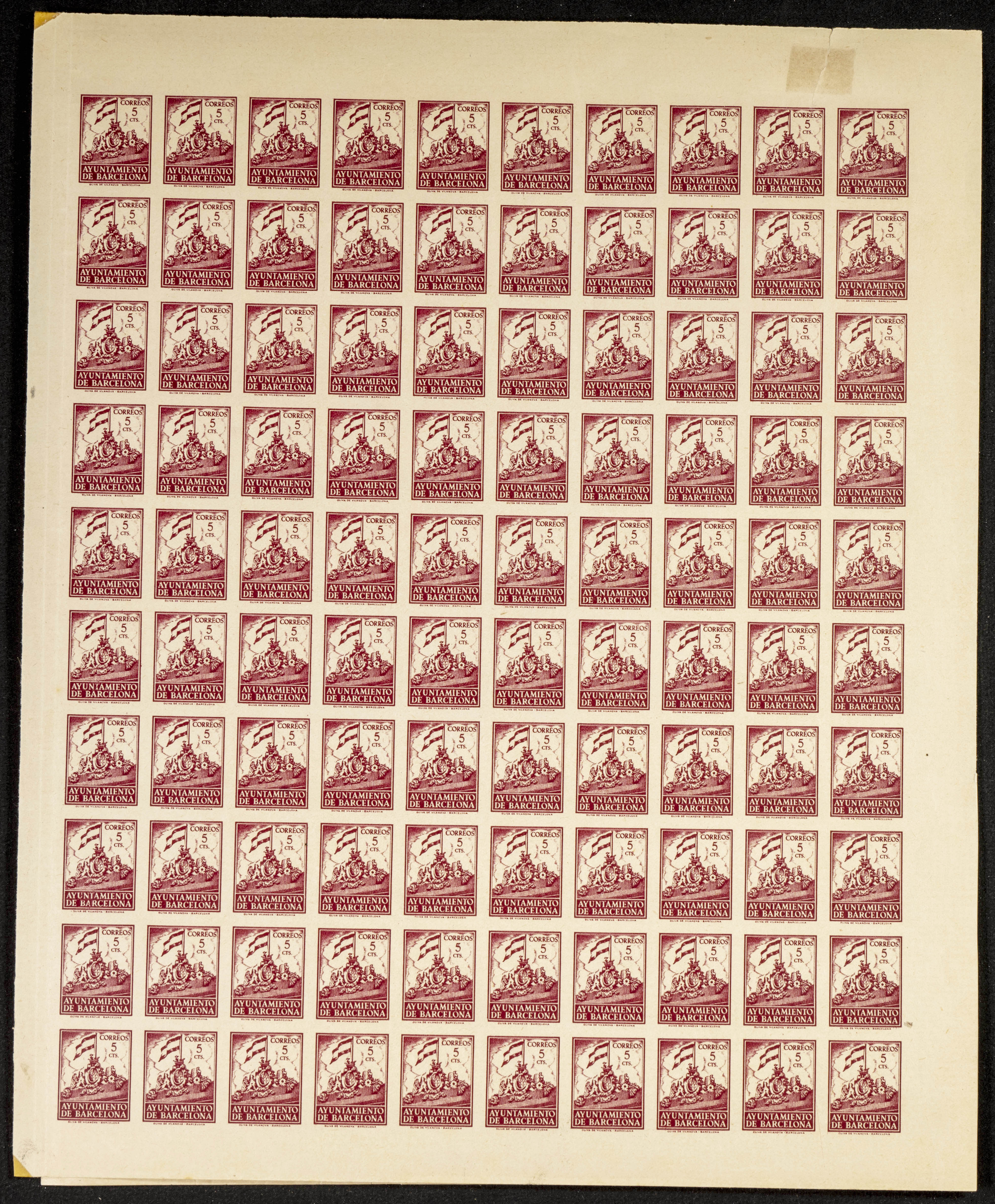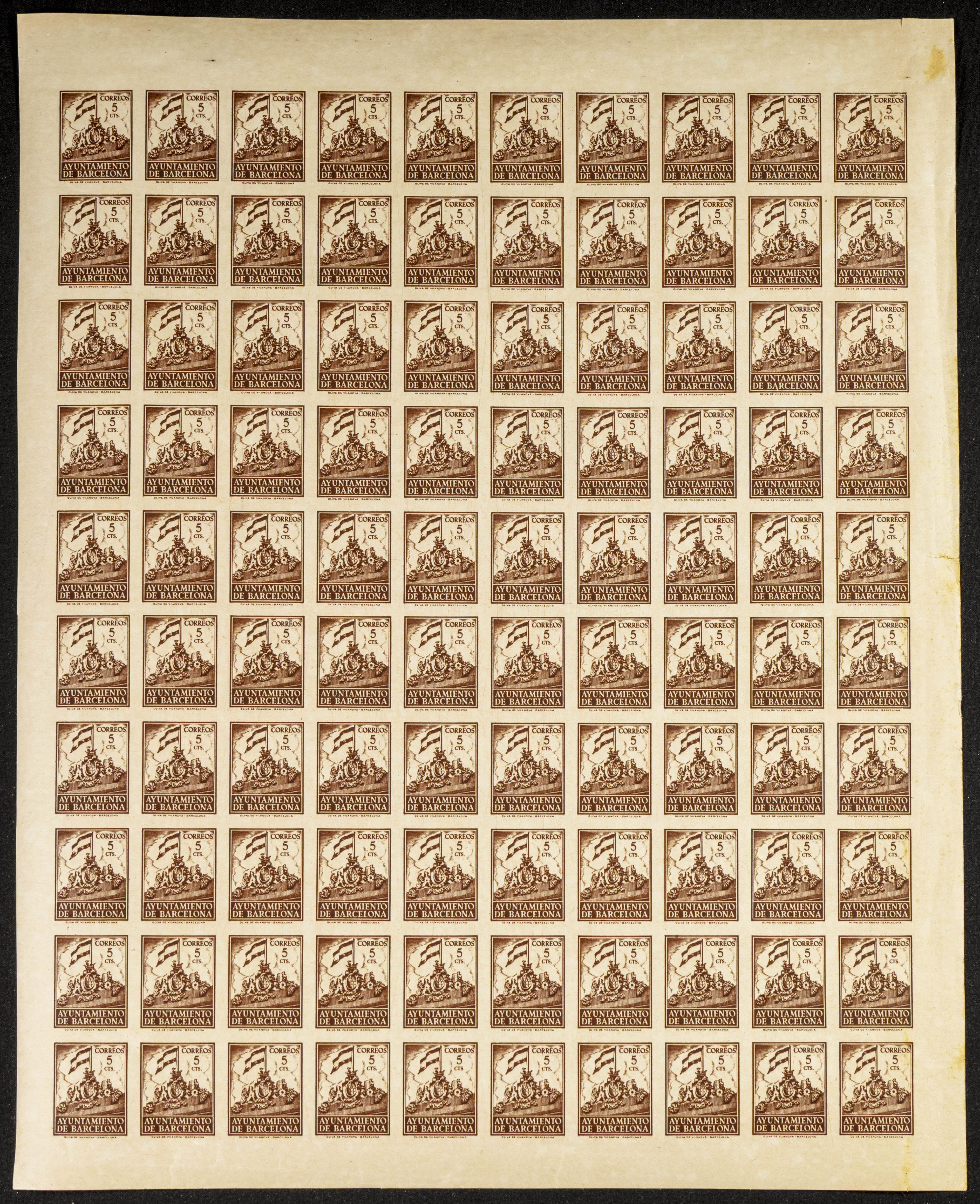 ★★ 55/59s(100). 1944. Serie completa, pliegos de cien sellos (con plena goma original, destacamos que no se trata de una maculatura, sino de la verdadera serie sin dentar). SIN DENTAR. MAGNIFICO Y RARO CONJUNTO. Edifil 2025: +6.900 Euros