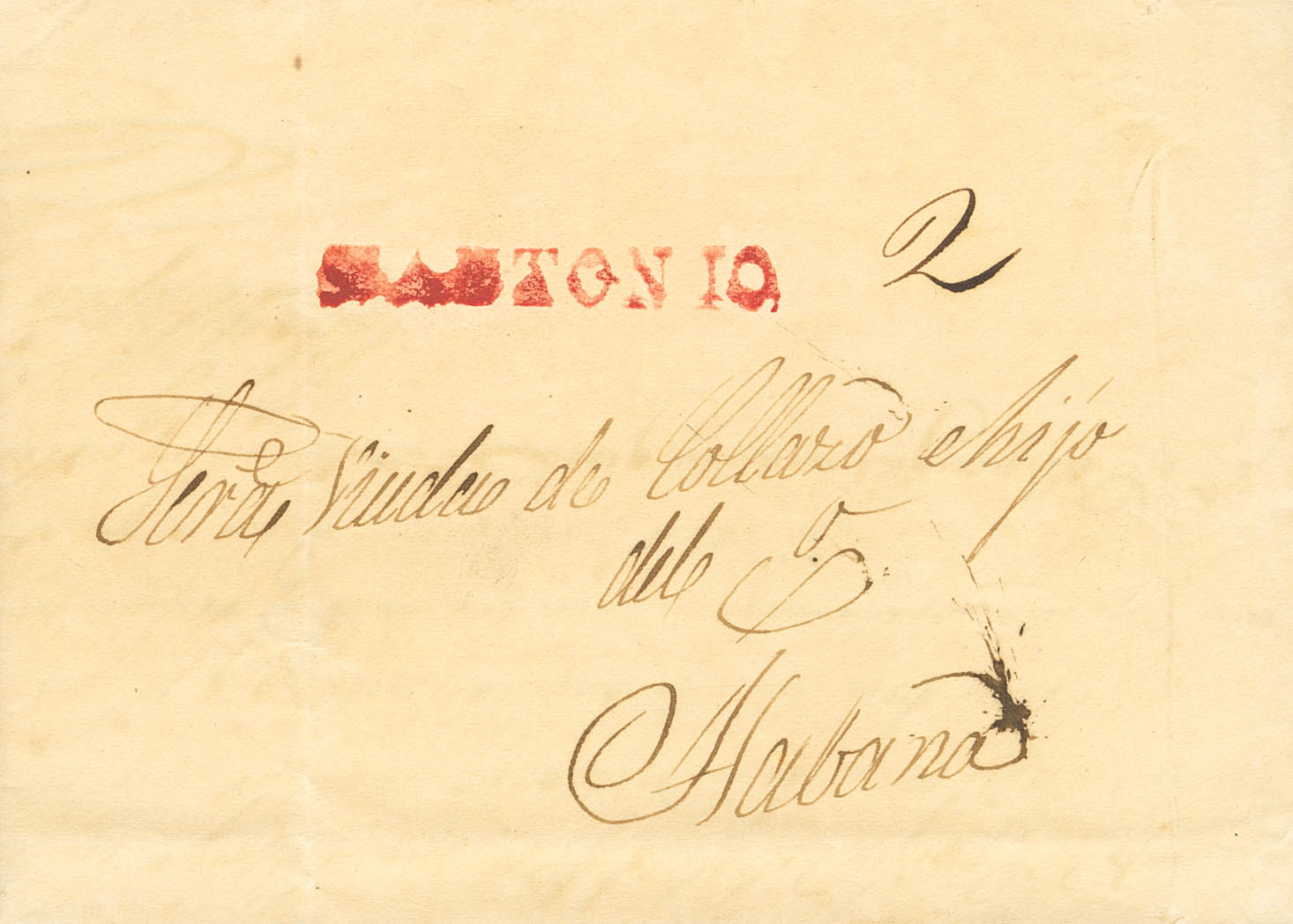 1838. SAN ANTONIO ABAD a LA HABANA. Marca SN.ANTONIO, en rojo (P.E.1) edición 2004. MAGNIFICA Y RARA. Ex-Lecha.