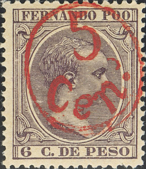 ★ 40C. 1896. 5 cts sobre 6 cts violeta. MAGNIFICO. Edifil 2025: 30 Euros