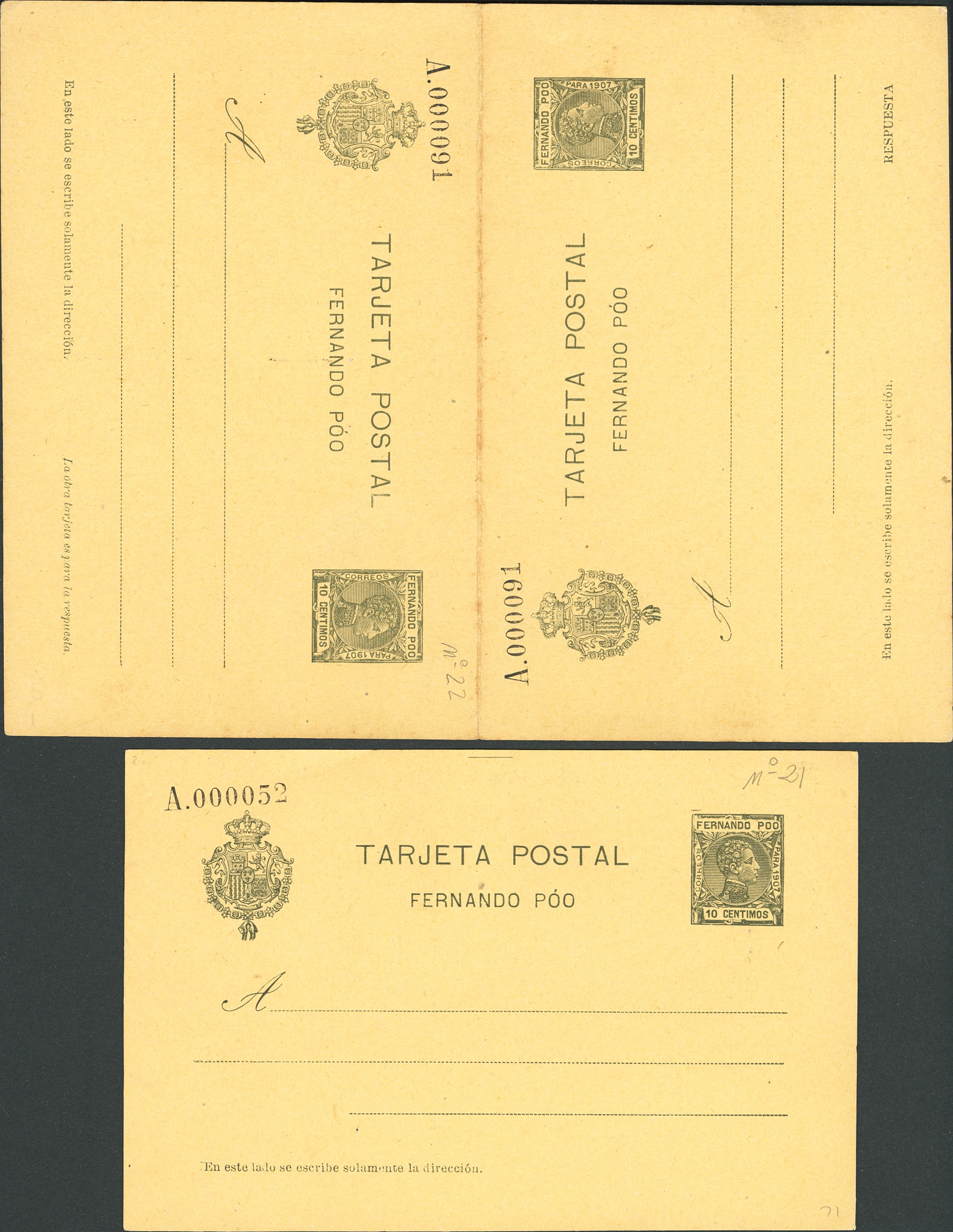 (★) EP21/22. 1907. 10 cts verde negro sobre Tarjeta Entero Postal y 10 cts + 10 cts verde negro sobre Tarjeta Entero Postal, de ida y vuelta. MAGNIFICAS Y RARAS. Edifil 2025: 450 Euros