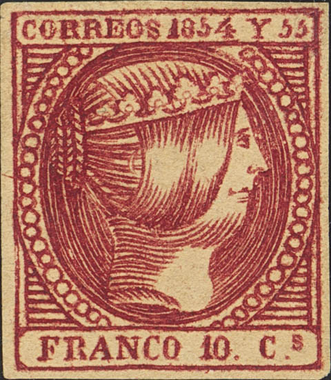 (★) 2. 1854. 10 cuartos carmín. MAGNIFICO. Cert. CEM. Edifil 2025: 1.000 Euros
