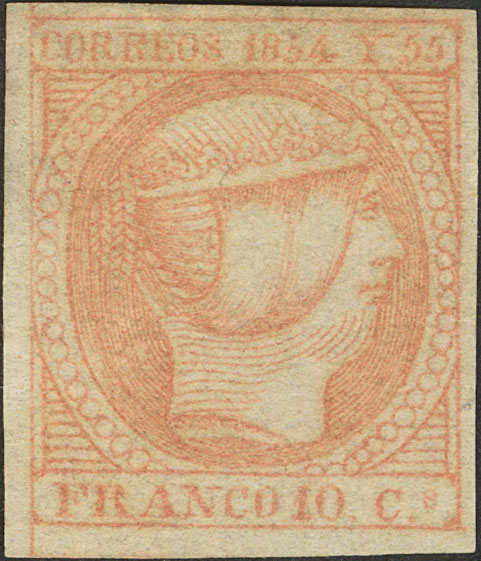 (★) 2b. 1854. 10 cuartos rosa. Márgenes enormes. MAGNIFICO Y MUY RARO, ESPECIALMENTE EN ESTA CALIDAD. Cert. GRAUS. Edifil 2019: 1.275 Euros