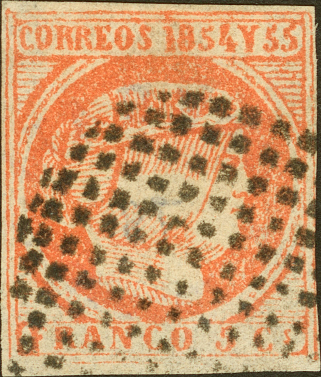 6F. 1855. 5 cuartos bermellón. FALSO SPERATI (Tipo A), al dorso marca de la B.P.A. MAGNIFICO.