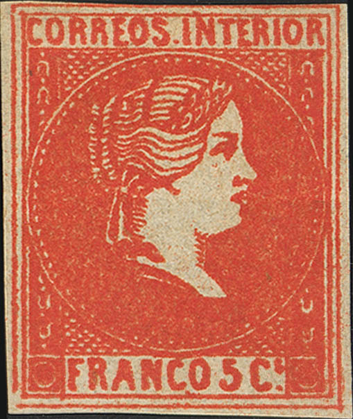 (★) 9. 1861. 5 cuartos bermellón (doblez horizontal). BONITO. Edifil 2025: 85 Euros