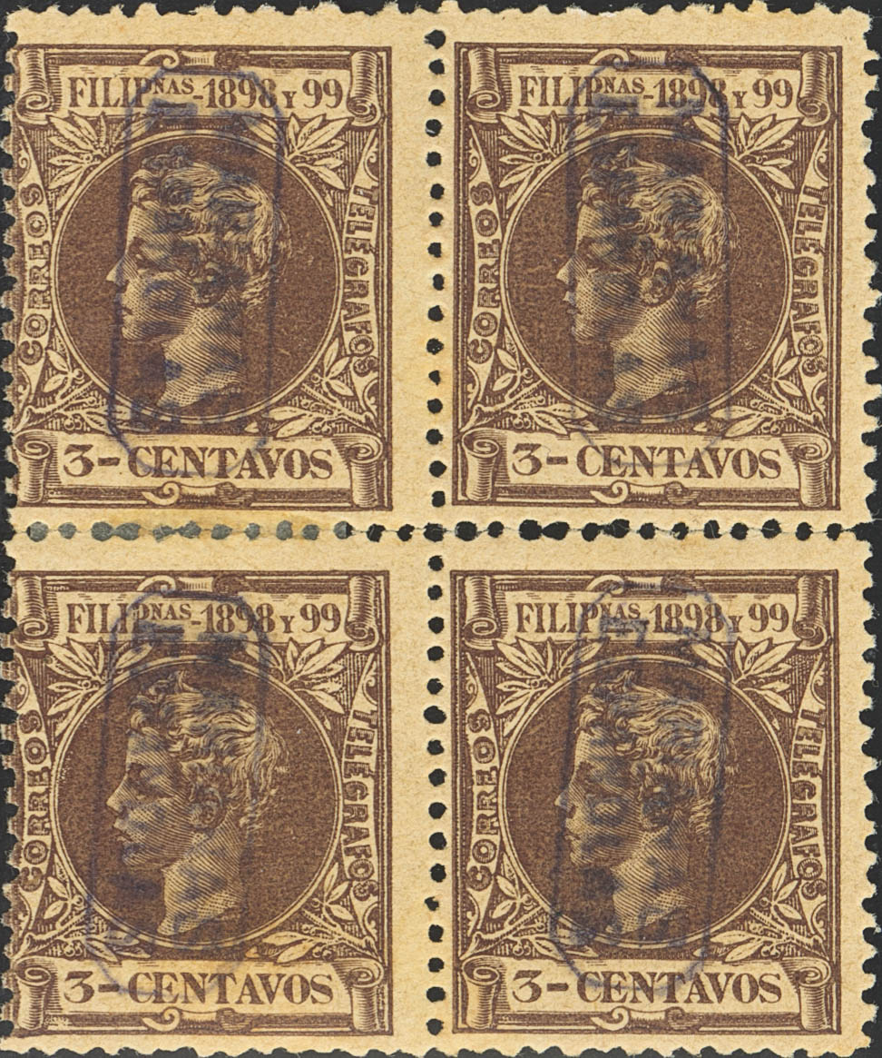 ★ 2(4). 1899. 3 ctvos castaño, bloque de cuatro. MAGNIFICO Y MUY RARO. Cert. CEM. Edifil 2025: +2.800 Euros