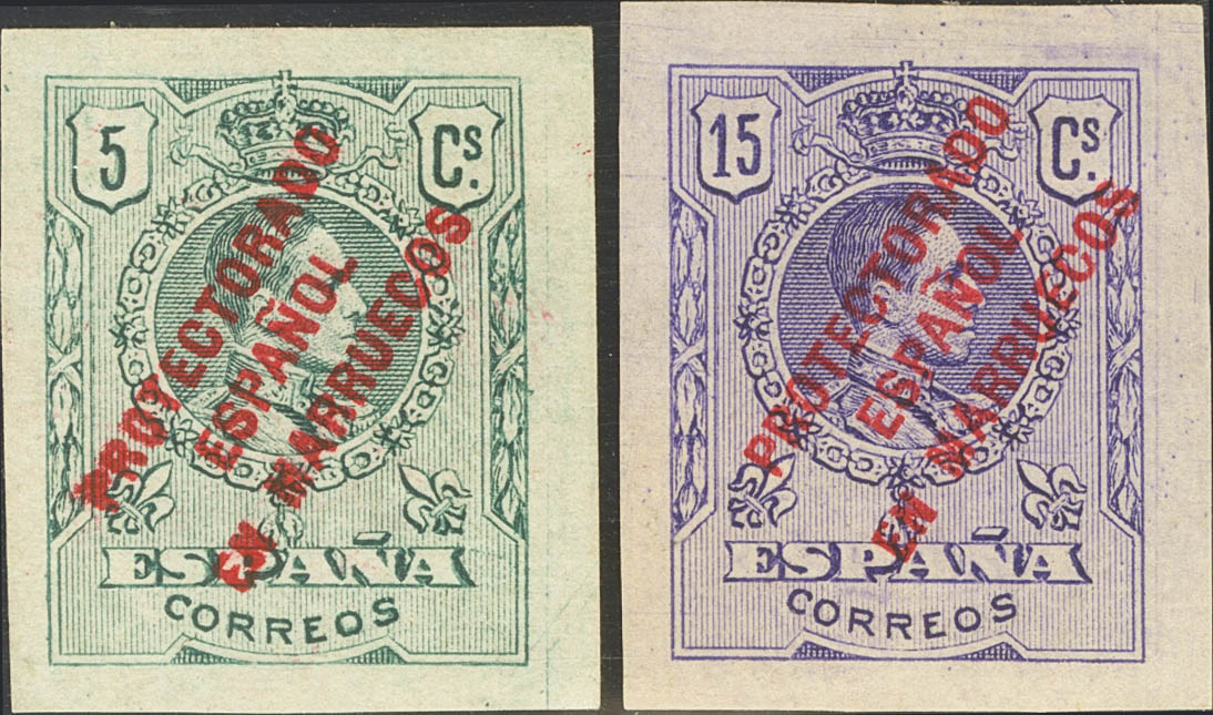 ★/(★) 45s, 47s. 1915. 5 cts verde y 15 cts violeta. SIN DENTAR (enormes y espectaculares márgenes). MAGNIFICOS. Edifil 2018: 227 Euros