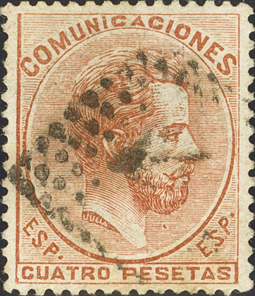 128F. 1872. 4 pts castaño. FALSO SPERATI, al dorso la firma de Jean Sperati y sin la marca de la B.P.A. MAGNIFICO Y RARO.