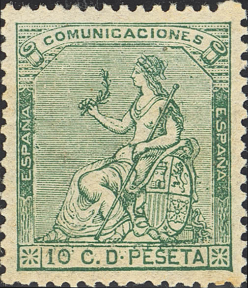 ★ 133. 1873. 10 cts verde. Color intenso. MAGNIFICO.