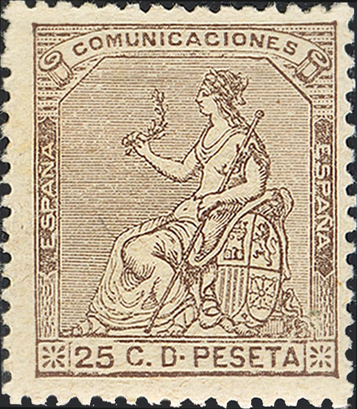★ 135. 1873. 25 cts castaño. MAGNIFICO.