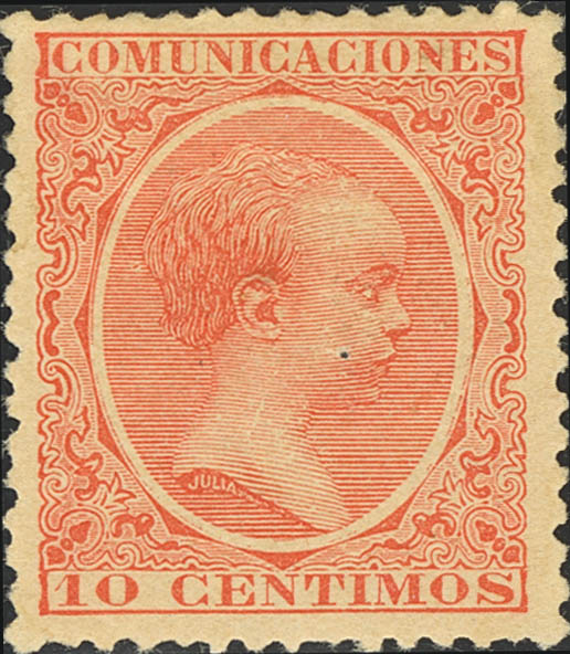 ★ 218. 1889. 10 cts bermellón. Color excepcional y muy bonito centraje. MAGNIFICO.
