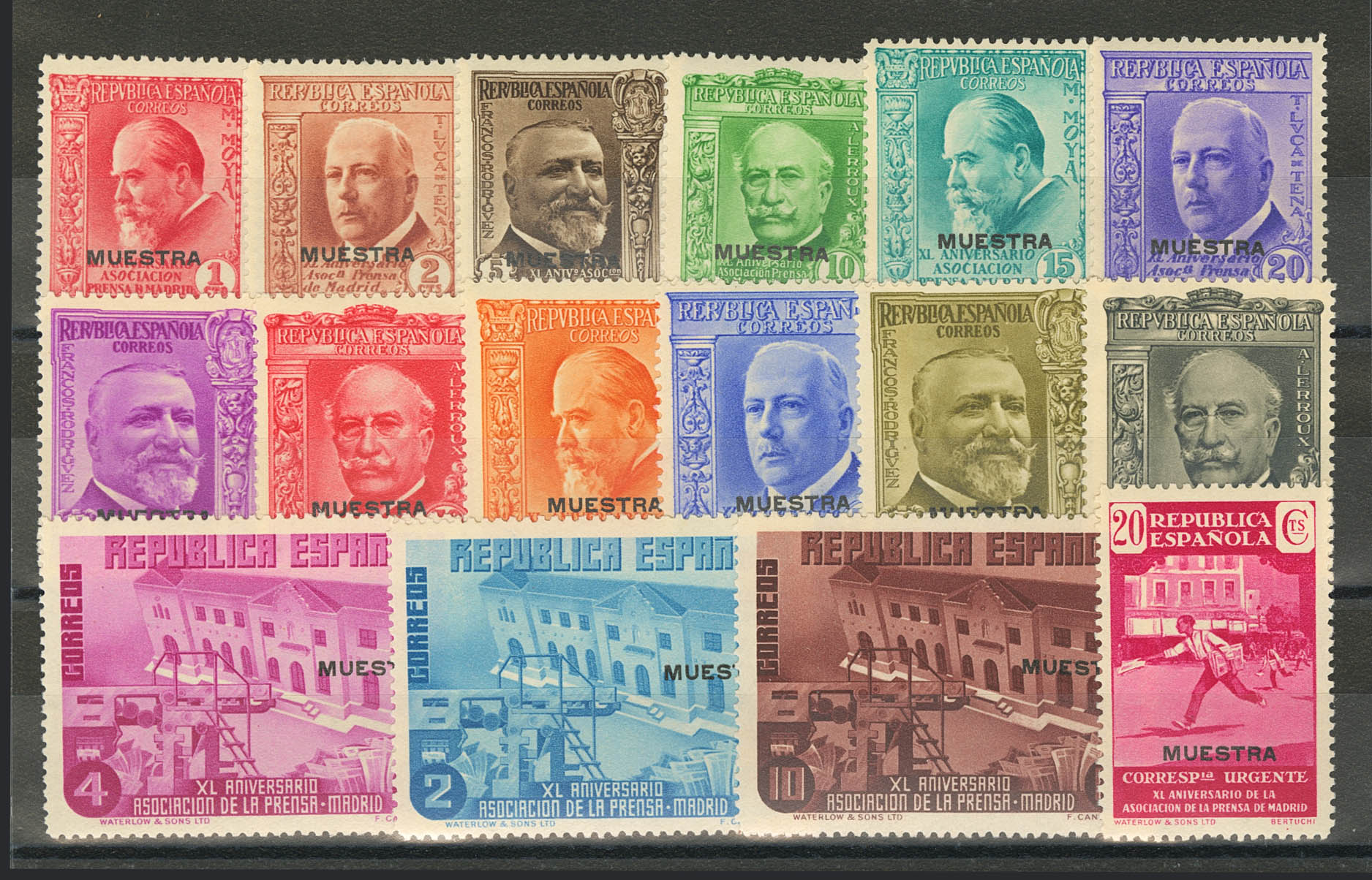 ★★ 695/10M. 1936. Serie completa. MUESTRA. MAGNIFICA. Edifil 2025: 96 Euros
