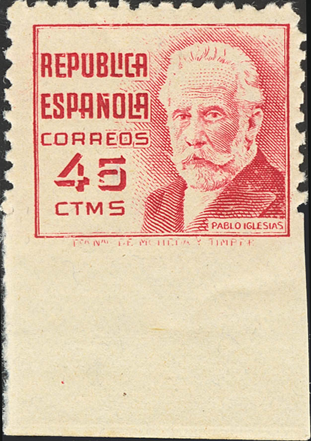 ★★ 737smz. 1936. 45 cts carmín. SIN DENTAR EL MARGEN INFERIOR. MAGNIFICO. Edifil 2020: +56 Euros