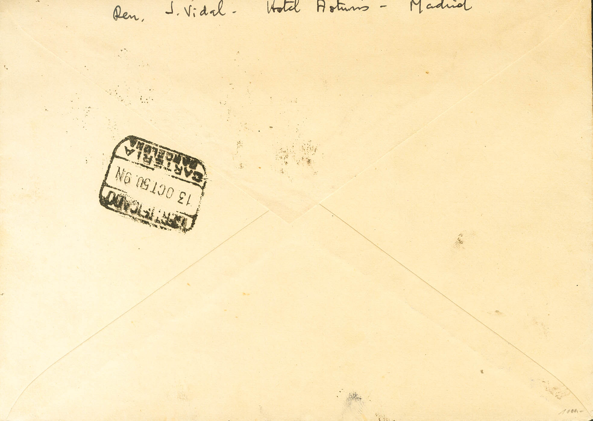 1075/82. 1950. Serie completa. Sobre de Primer Día de MADRID a BARCELONA. Al dorso llegada. MAGNIFICO. Edifil 2025: 875 Euros