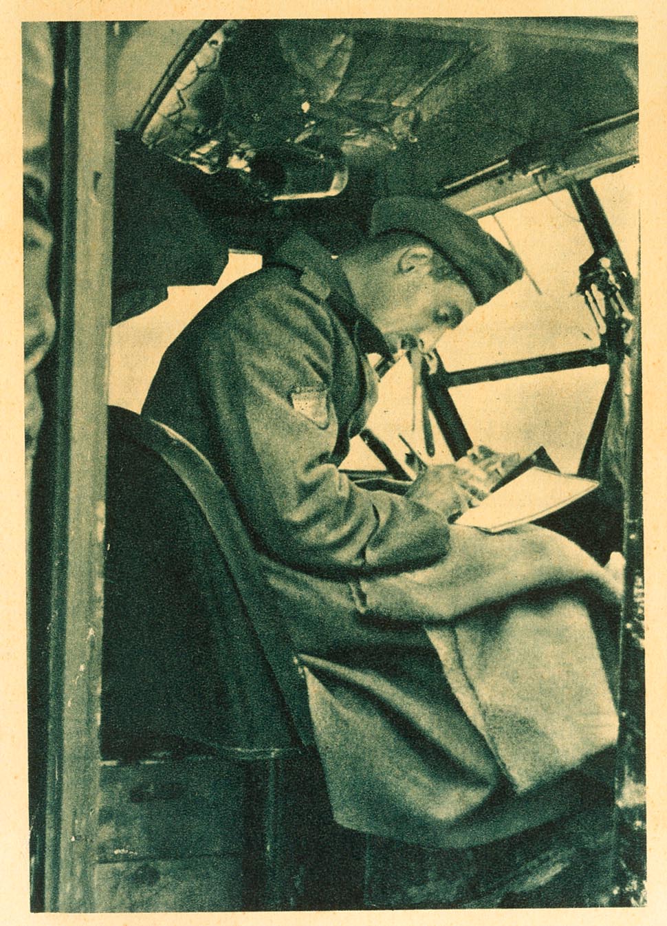 (★)(1940ca). Tarjeta Postal de la División Azul "Escribiendo a la Familia". MAGNIFICA.