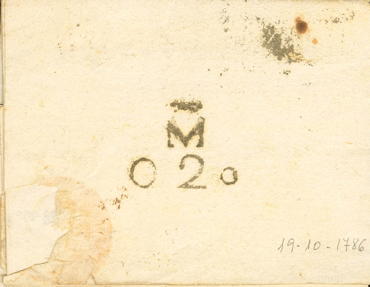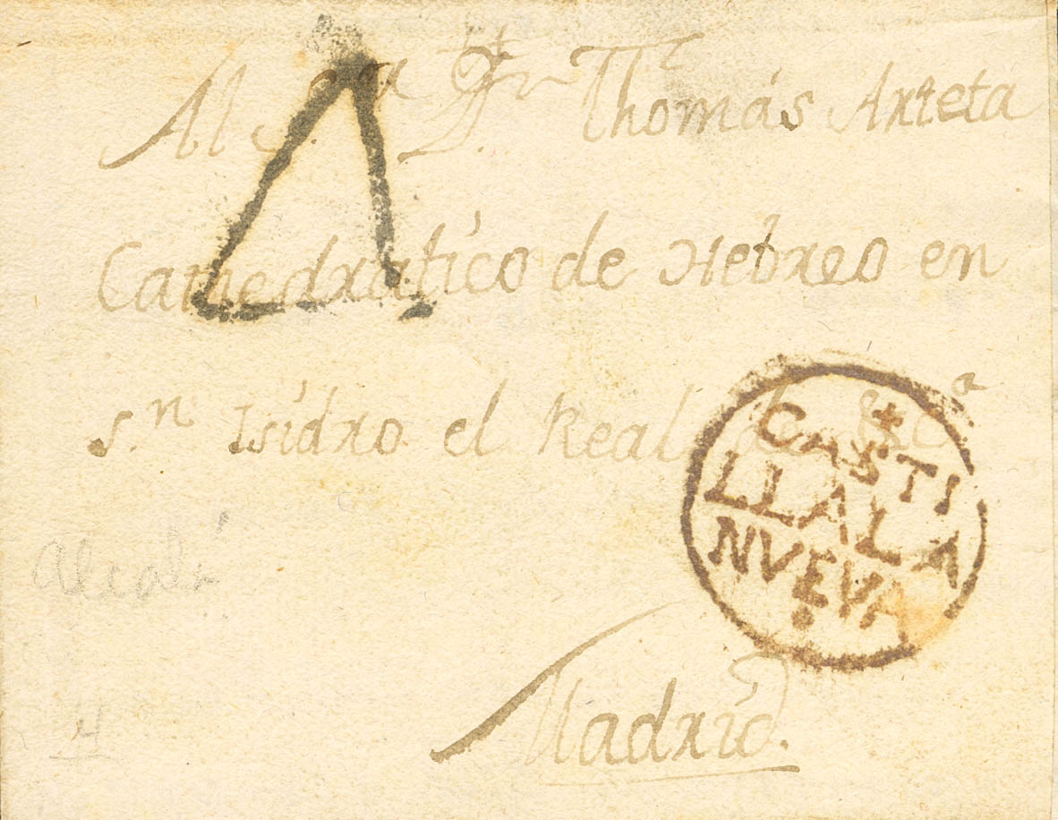 1786. ALCALA DE HENARES a MADRID. Marca CASTI / LLA LA / NVEVA, en rojo (P.E.4) edición 2004. MAGNIFICA ESTAMPACION Y RARA.
