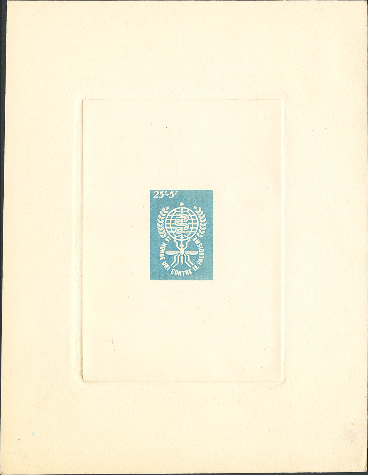 (★)Yvert 304. 1962. 25 f + 5 f azul SIN LEYENDA DEL PAIS. PRUEBA DE ESTADO. MAGNIFICA Y RARA.