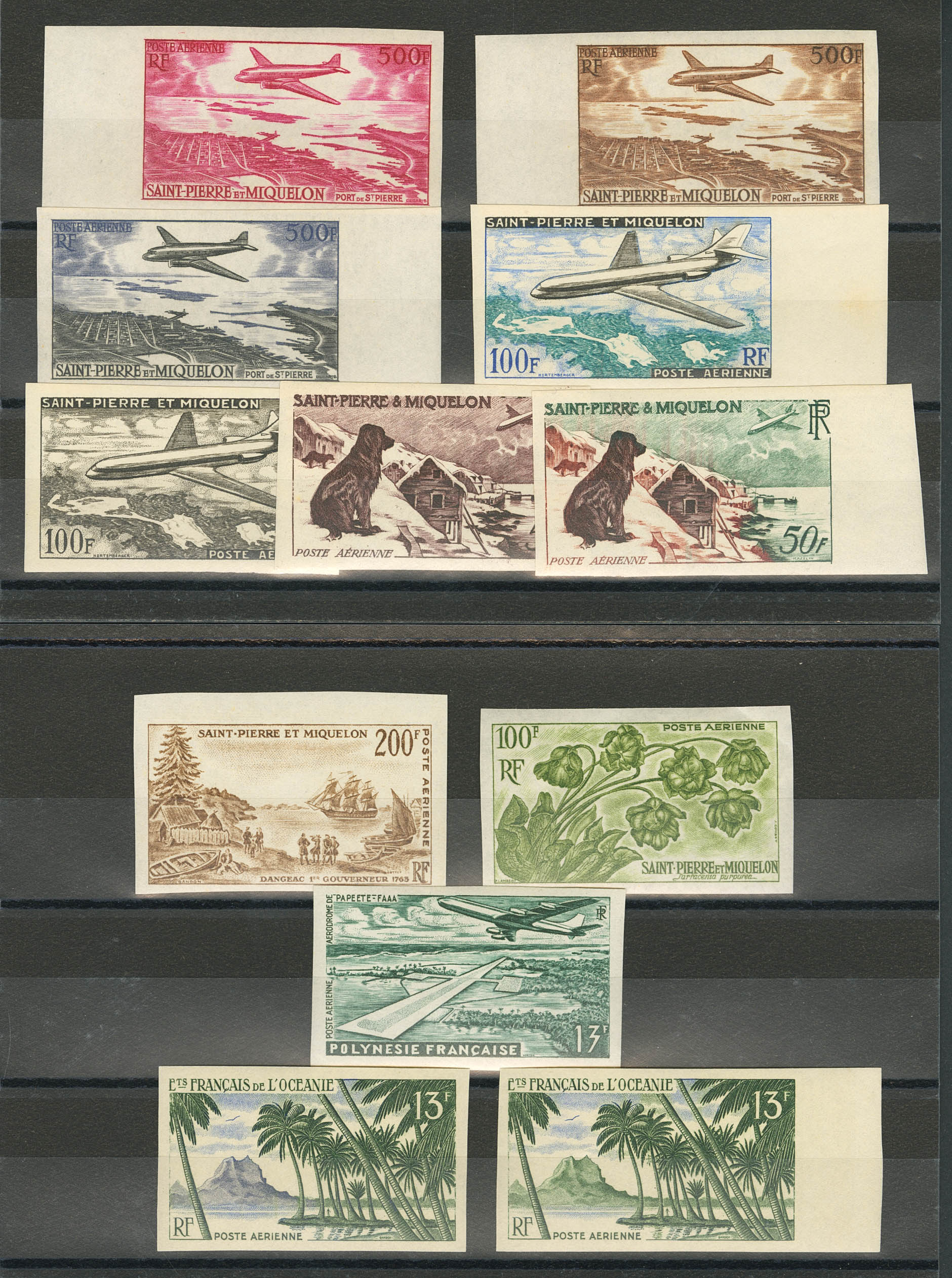 ★★/★1956. Conjunto con doce ENSAYOS DE COLOR y SIN DENTAR, de Correo Aéreo. MAGNIFICOS.