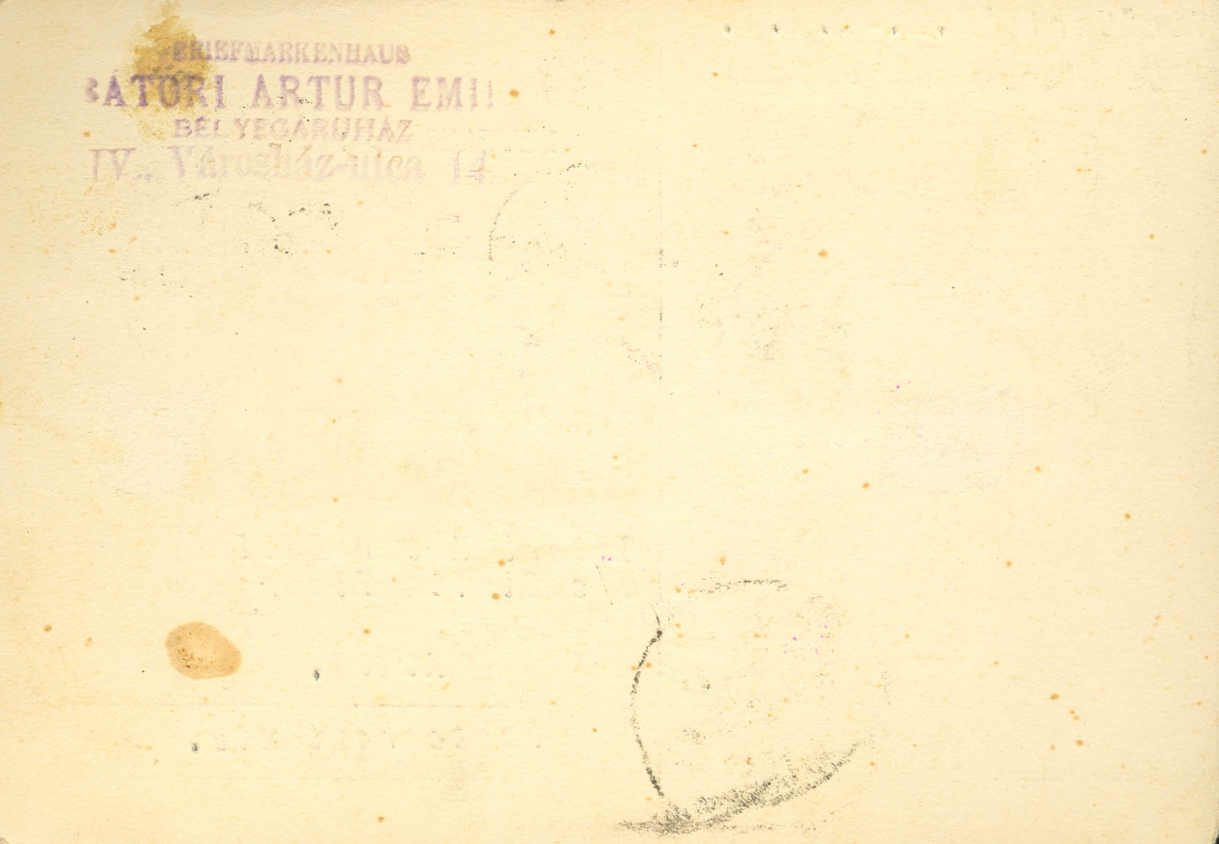 Yvert 450, Aéreo 15, 18. 1927. 2 f naranja, 20 f carmín, 50 f castaño violeta y viñeta FIRST HUNGARIAN MEDITERRANEAN CIRCULAR FLIGHT. Tarjeta Postal de BUDAPEST a ATENAS (GRECIA). En el frente marca PREMIER CIRCUIT AERIEN HUNGROIS-MEDITERRANEE, en rosa, marca griega del vuelo y llegada. MAGNIFICA Y RARA.