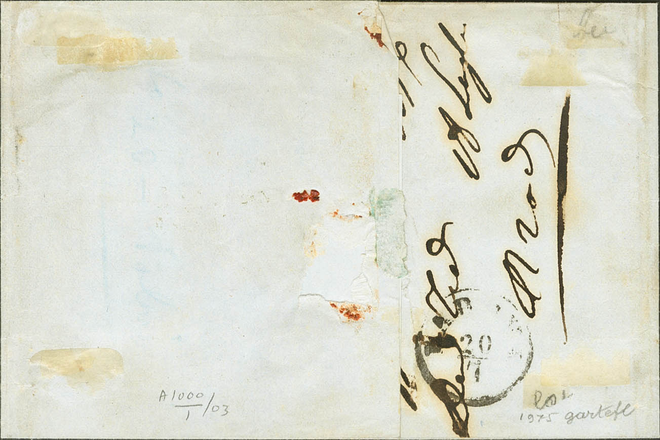 Yvert 5(2). 1852. 40 cts negro sobre azul oscuro, dos sellos. REGGIO a ABANO. Matasello BARRAS DE REGGIO. MAGNIFICA Y RARA. (Sassone 6)