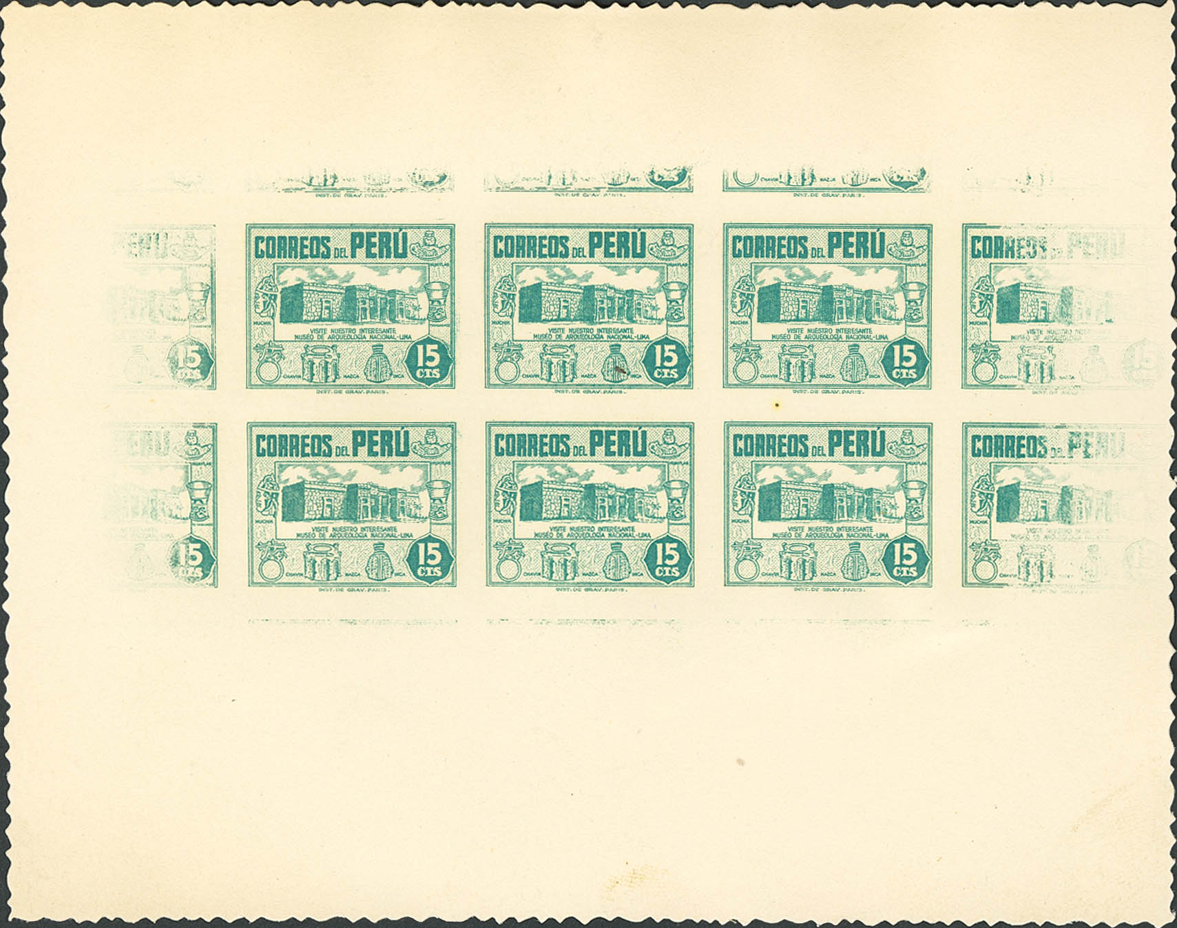 (★)Yvert 410. 1951. 15 cts verde azul. PRUEBA DE IMPRESION, sobre papel listado. MAGNIFICA Y MUY RARA.