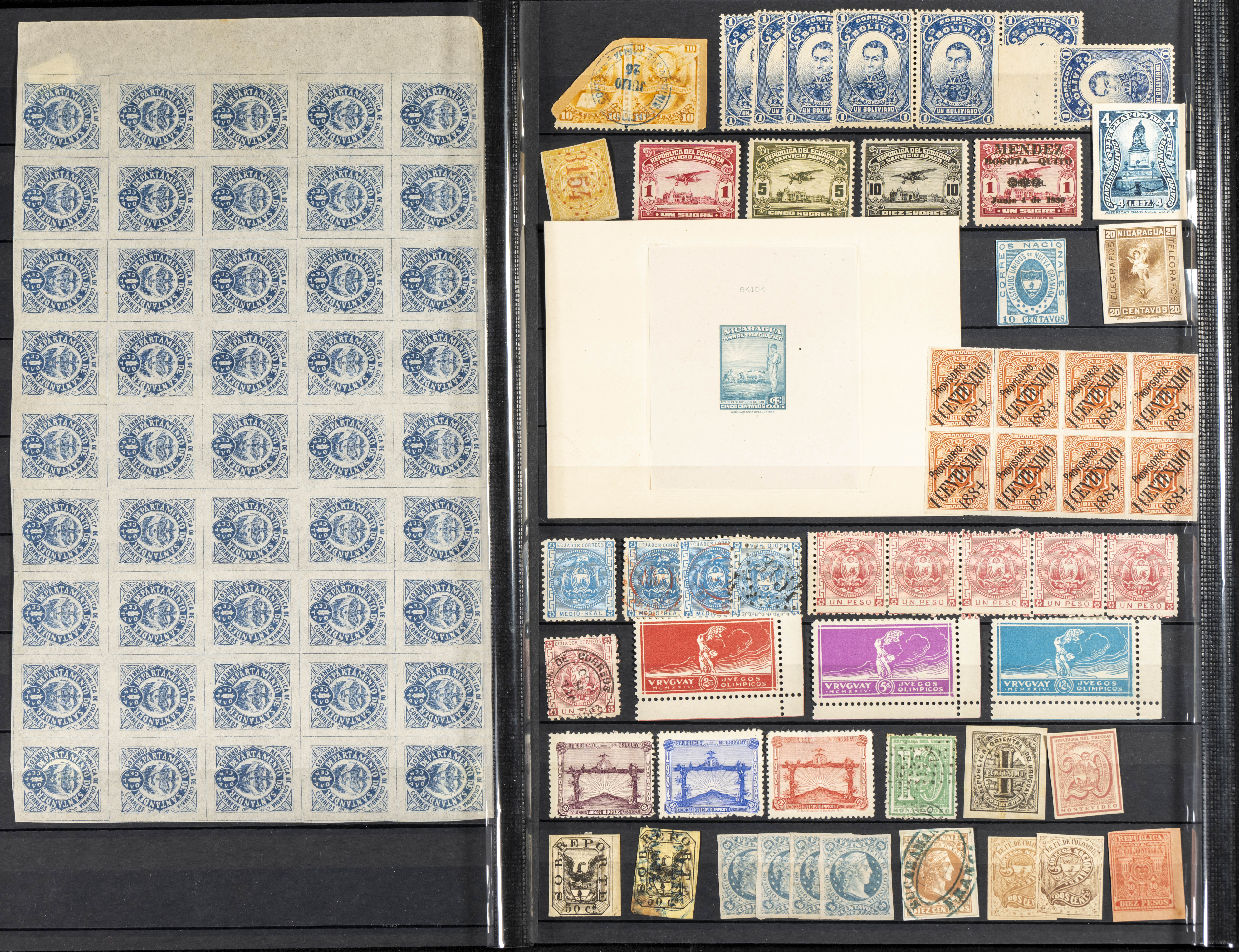 ★/(1859ca). Interesante conjunto de sellos sueltos de diversos países de América Latina entre 1859 y 1936, la mayoría en nuevo, incluye alguna serie completa así como numerosas variedades de sobrecarga dobles, invertidas, de diferentes tipos, etc, una Prueba de Artista de Nicaragua, sellos sin dentar y otras variedades de dentado. ALTISIMO VALOR DE CATALOGO. A EXAMINAR.