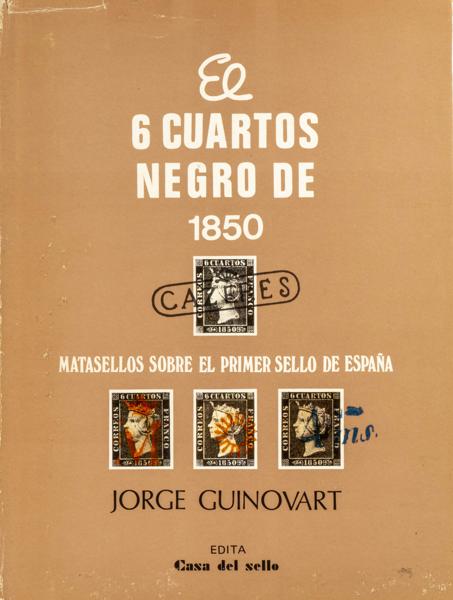 1984. 6 CUARTOS NEGRO DE 1850, MATASELLOS SOBRE EL PRIMER SELLO DE ESPAÑA. Jorge Guinovart. Edición Casa del Sello. Madrid, 1984.