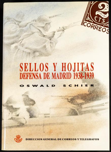 1991. SELLOS Y HOJITAS DEFENSA DE MADRID 1938-1939. Oswald Schier. Edición Dirección General de Correos y Telégrafos. Madrid, 1991.