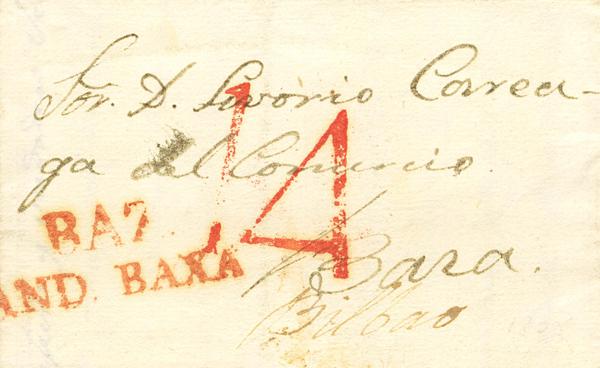 1838. CANILES (GRANADA) a BILBAO. Marca BAZ / AND.BAXA, de Baza (P.E.6) edición 2004. MAGNIFICA Y MUY RARA.