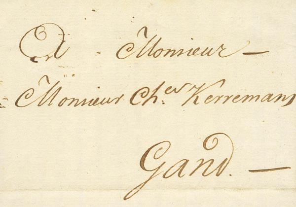 1793. CADIZ a GANTE (PAISES BAJOS), encaminada vÃa Londres por J.C. Priedel (anotación en el reverso). MAGNIFICA Y RARA.