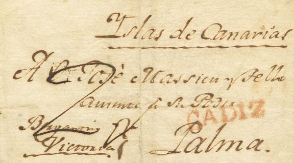 (1819ca). CADIZ a LA PALMA. Marca CADIZ (P.E.16) edición 2004 y anotación manuscrita "BergantÃn Victoria". MAGNIFICA.